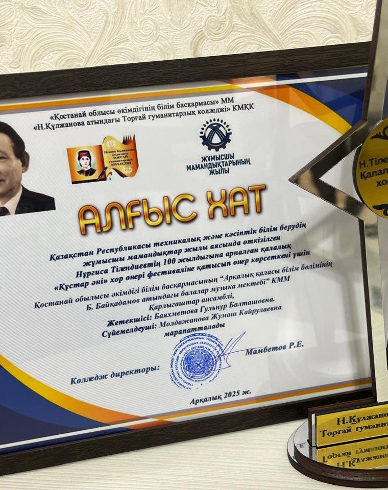 "Жұлдызды дауыстар" балалар хоры алғыс хатпен марапатталды.