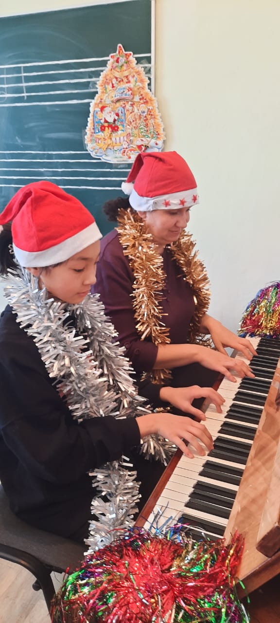 Мектебімізде фортепиано бөлімінде мұғалімдер мен оқушылардың ұйымдастырылуымен жаңа жылдық кеш өтті.Мұндай бейресми іс-шара алғаш рет өткізіліп отыр. Мұғалімдердің көмегімен арнайы теориялық пәндер кабинеті мерекеге сай безендірілді. Оқушылар бір-бірлеріне жылы лебіз тілектерін білдіріп, түрлі жұмбақтар шешіп, флешмоб билеп, көңілді ойындар ойнады. Іс-шараға қатысқандардың бәрі көңіл көтеріп, жақсы көңіл күйде жаңа жылды ерекше атап өтті.