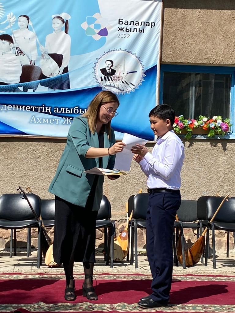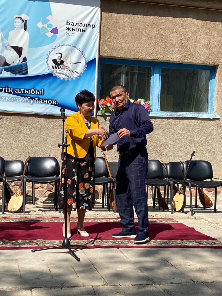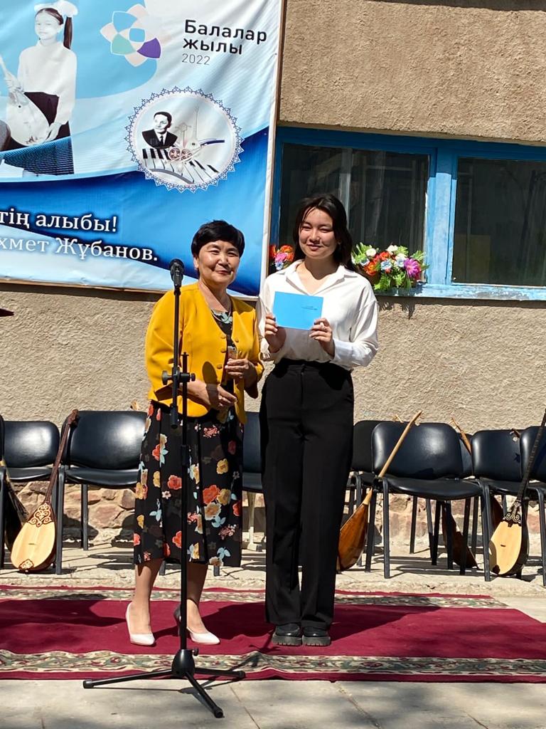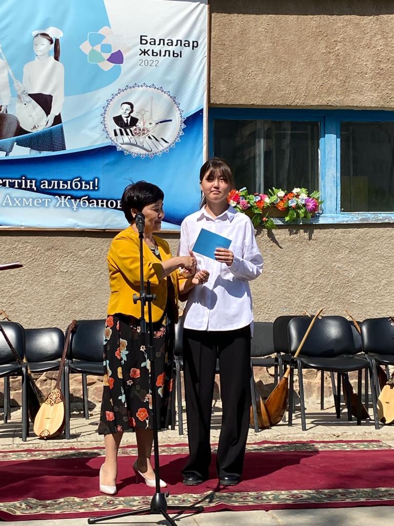 Б.Байқадамов атындағы балалар музыка мектебінде бітіруші түлектерге арналған концерт өтті.Өз кезегінде оқушылар мен ұстаздар өнерлерін ортаға салып, ән мен күйден шашу шашты.Атап айтатын болсақ, бітіруші түлектері мен жетекшілерінен құралған домбырашылар ансамблінің орындауында Құрманғазының «Балбырауын» күйі, Дәулет Айарудың орындауында Ұшқын Жамалбектің әні «Кейкі Мерген» әні кешіміздің шымылдығын ашты.Ары қарай сөз кезегі мектебіміздің директоры Жаксыгуль Ибрагимовнаға беріліп, бітіруші түлектерге салтанатты түрде ортаға шақырылып, Б.Байқадамов атындағы балалар музыка мектебін аяқтағанын растайтын үздік қызыл және жақсы оқығаны үшін көк түсті куәліктер табыс етілді.Келесі кезекте фортепиано бөлімінің бітіруші түлегі Майорова Варвара орындауында Абайдың «Көзімнің қарасы» әні, Мұқан Төлебаевтың «Кестелі орамалын» қобыз бөлімінің бітіруші түлегі Каирден Аяна концертмейстер Молдажанова Жумаш Кайрулаевнаның сүйемелдеуімен орындалды.Сонымен қатар,мектебіміздің мерекелік ic-шараларына белсене араласып жүрген бітіруші түлектерімізге арнайы мектеп директорының мадақтамасын табыстау директордың оқу ісі жөніндегі орынбасары Назира Әділханқызы мен кәсіподақ төрайымы Анна Владимировнаға сөз кезегі берілді.Серік Жұмабековтің “Жас қанат ұраным” әнін трионың орындауында шырқалды. Бүгінгі күнде біздің мектебімізден 2022 - 2023 оқу жылында фортепиано бөлімінен -5 оқушы, халық аспаптар бөлімі-қобыз аспабы бойынша-1 оқушы, домбыра аспабы бойынша-22 жұлдызды шәкірттеріміз музыка әлемінің алғашқы баспалдағынан білім алып, ұшқалы тұр. Алда басталар өмірдің саналы жолы ешкімді адастырмасын,сіздер жердегі жұлдыз болсаңыздар, аспандағы жұлдыздарыңыз өздеріңізге серік болып, алысқа жетелесін деген тілекпен, әсем әнмен қорытындыланған қоштасу концерті түлектерге арнап безендірілген мектеп ауласында естелікке фотосуретке түсумен аяқталды.