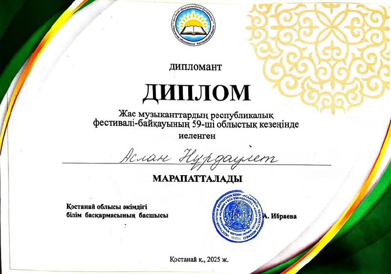 Аслан Нұрдаулет Дипломант (орта топ, домбыра)