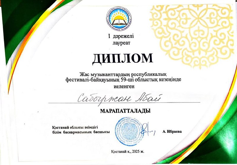 Сабыржан Абай 1 орын ( үлкен топ, домбыра)