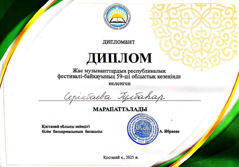 Серікбаева Гүлбахар Дипломант (орта топ, прима қобыз)
